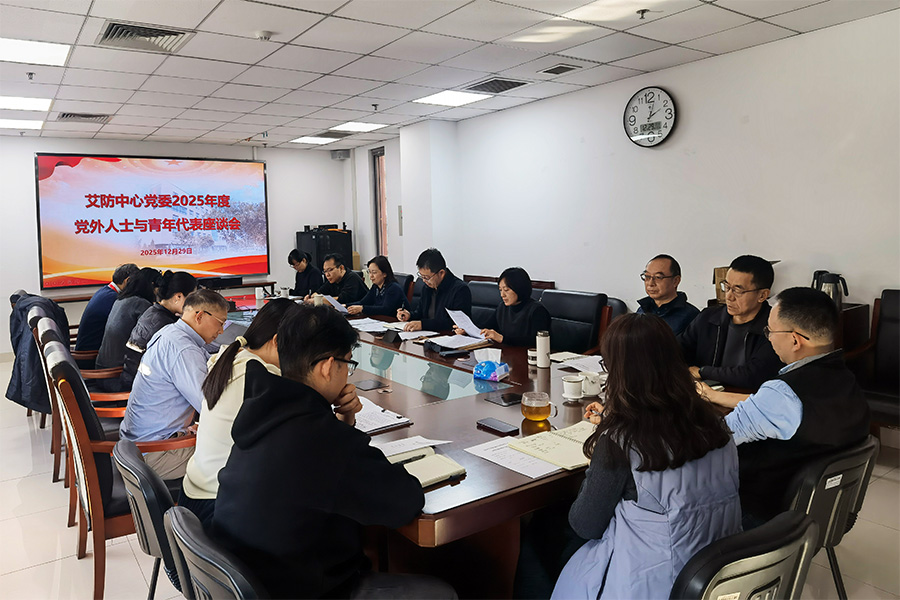12月29日,艾防中心党委组织召开2025年度党外人士和青年代表座谈会。会议传达学习了党的二十届四中全会精神和习近平总书记关于统战工作和青年工作的重要论述。与会人员聚焦人才培养、科研创新、教育培训、成果转化、岗位聘任、文化建设、心理健康及制度优化等重点工作,结合实际踊跃发言,提出了系列务实可行的意见建议。