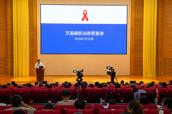 7月2日,国务院防治艾滋病工作委员会办公室艾滋病防治政策宣讲团在天津市党校进行艾滋病防治政策宣讲。