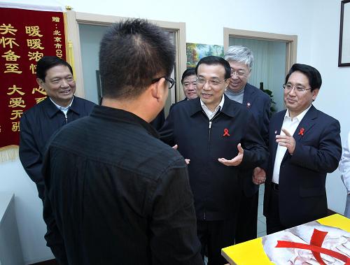 11月18日,中共中央政治局常委、国务院副总理、国务院防治艾滋病工作委员会主任李克强主持召开国务院防治艾滋病工作委员会全体会议,并到北京市考察调研艾滋病防治情况。这是在北京市疾病预防控制中心阳光健康社区,李克强了解艾滋病毒感染者工作、生活与治疗情况。新华社记者 庞兴雷/摄影